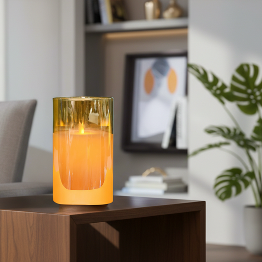 Amber Glow: Flameless LED Candle in Cylindrical Glass Holder