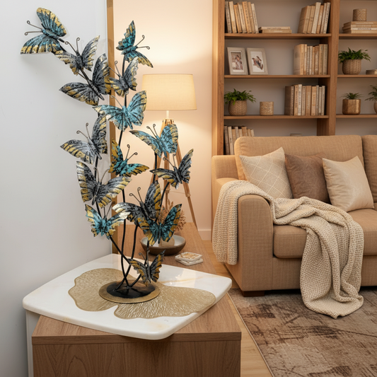 Artistic Golden Wing Butterfly Cluster Decor | Blue & Teal Metal Sculpture