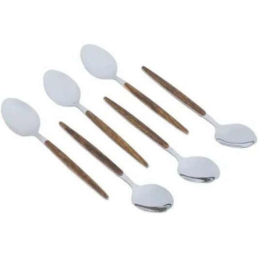 Natural Elegance: Stainless Steel Spoons with Warm Wood Handles (Set of 6)