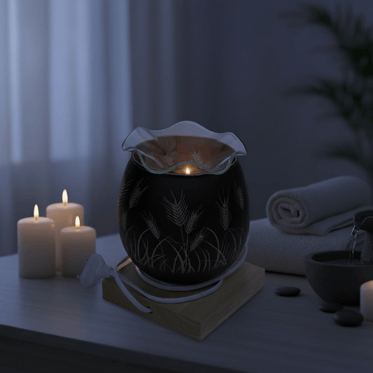 Rustic Wheat Motif Electric Aroma Diffuser with Glass Dish