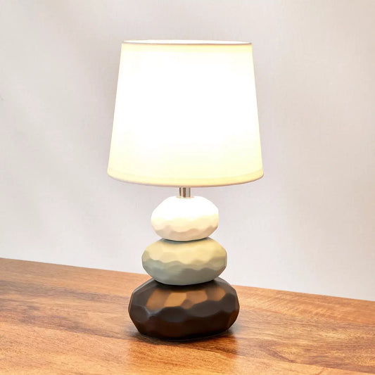 Organic Modern Pebble Stack Ceramic Table Lamp with White Shade - 30 cm