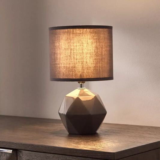 Geometric Faceted Ceramic Table Lamp with Grey Fabric Shade - 30 cm
