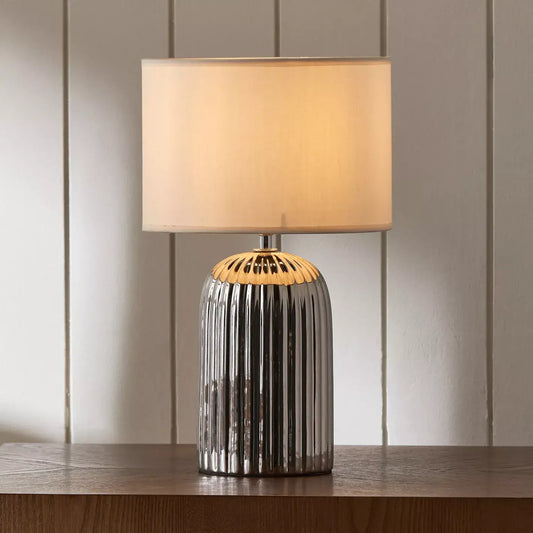 Modern Hammered Silver Ceramic Table Lamp with White Shade