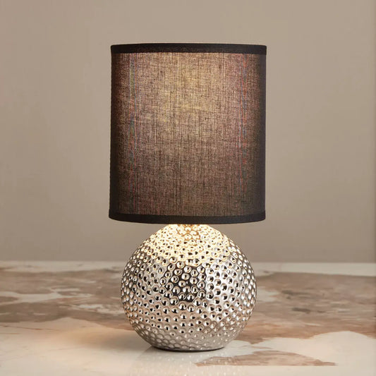 Modern Silver Dimpled Orb Ceramic Table Lamp with Black Shade - 27 cm