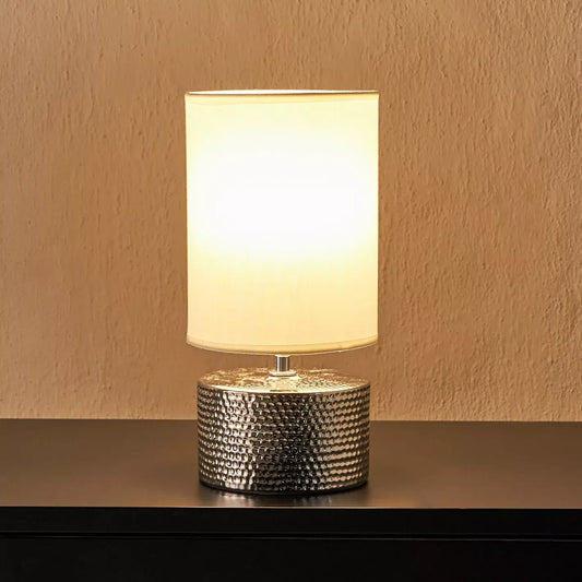 Chic Silver Hammered Cylinder Ceramic Table Lamp with White Shade - 31 cm
