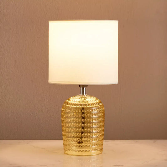 Elegant Gold Textured Glass Table Lamp with White Shade
