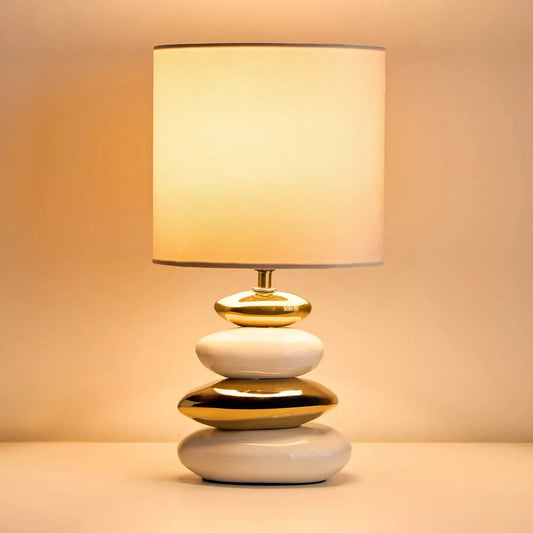 Chic White & Gold Stacked Pebble Ceramic Table Lamp with White Shade - 38 cm