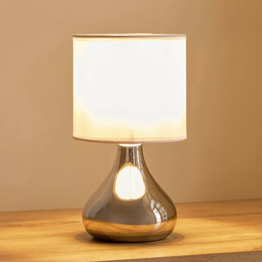 Modern Silver Pear-Shaped Ceramic Table Lamp with White Shade - 25 cm