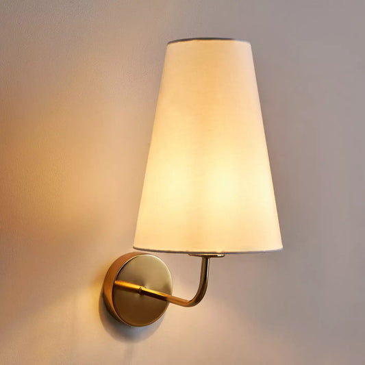 Elegant Gold Wall Sconce with Tapered White Fabric Shade