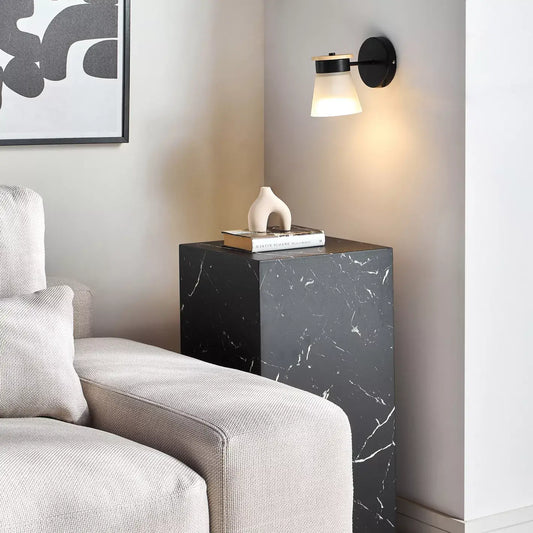 Modern Industrial Wall Sconce with Wood Accents and Frosted Shade