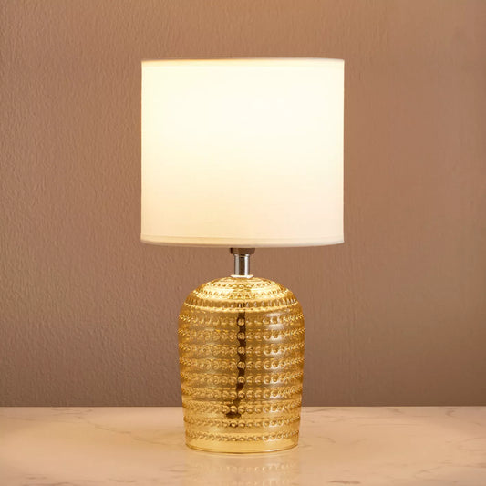 Elegant Gold Textured Glass Table Lamp with White Shade