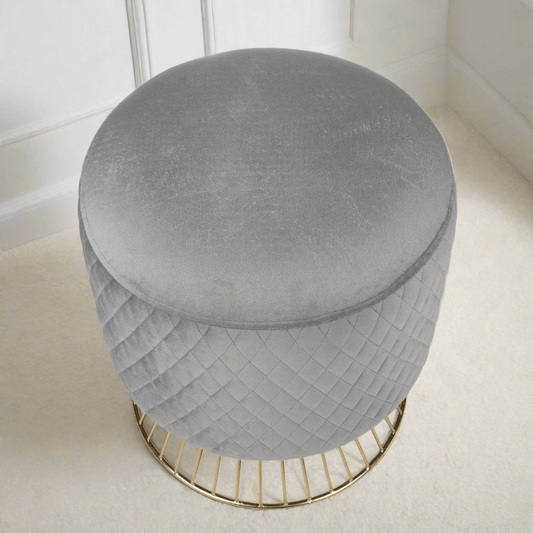 Special OfferElegant Gray Quilted Velvet Ottoman with Gold Base