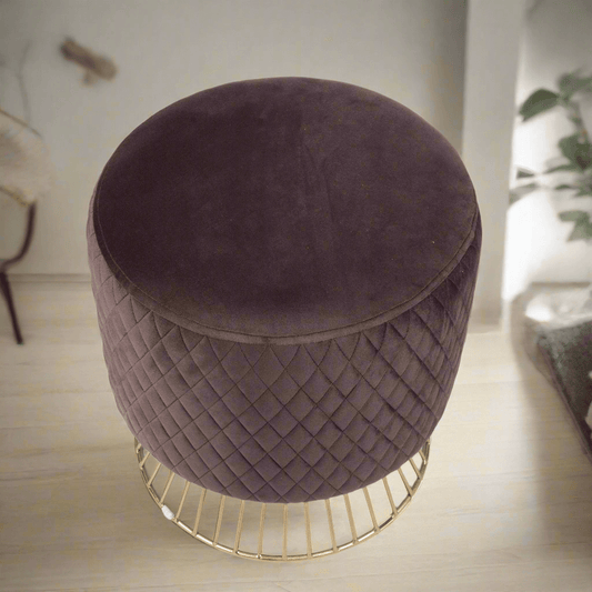 Luxurious Dark Brown Quilted Velvet Ottoman with Gold Base