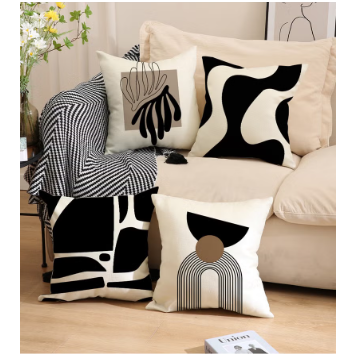 Modern Abstracts: Monochrome & Earth-Toned Throw Pillow Covers (Set of 4)