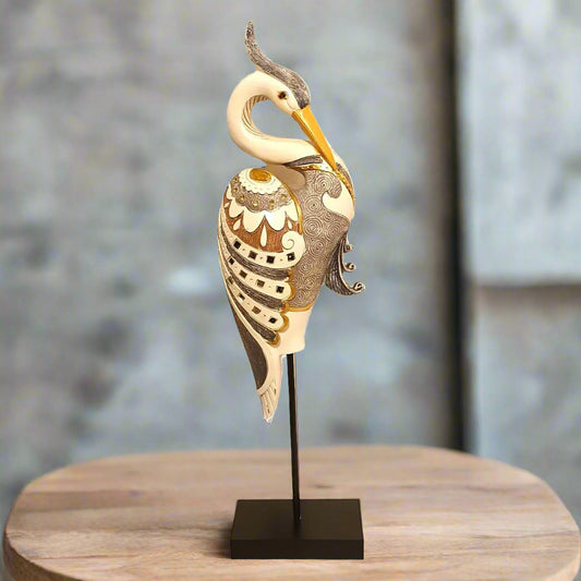 Avian Artistry: Ornate Heron Sculpture on Stand