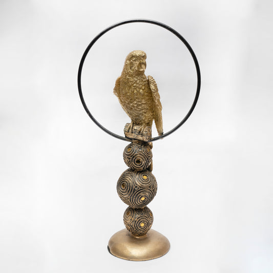 Gilded Harmony: Large Golden Bird & Sphere Sculpture
