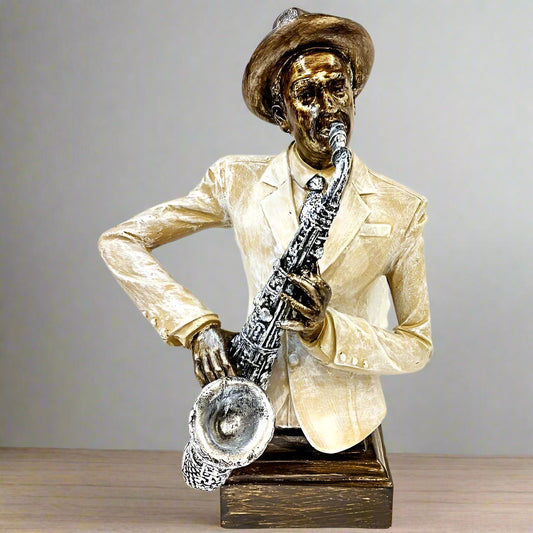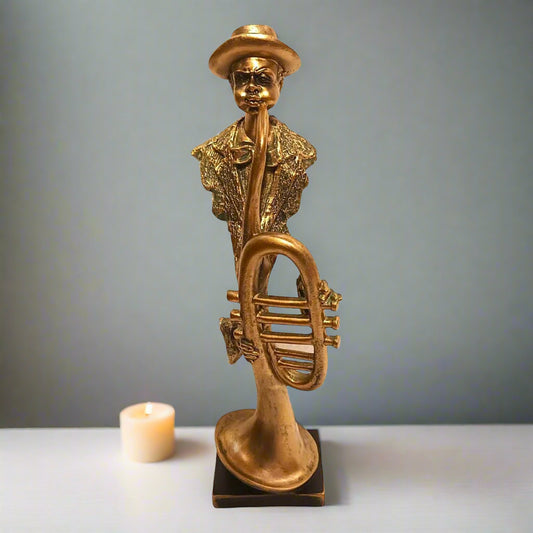 Smooth Sounds: The Bronze-Toned Trumpet Player Sculpture