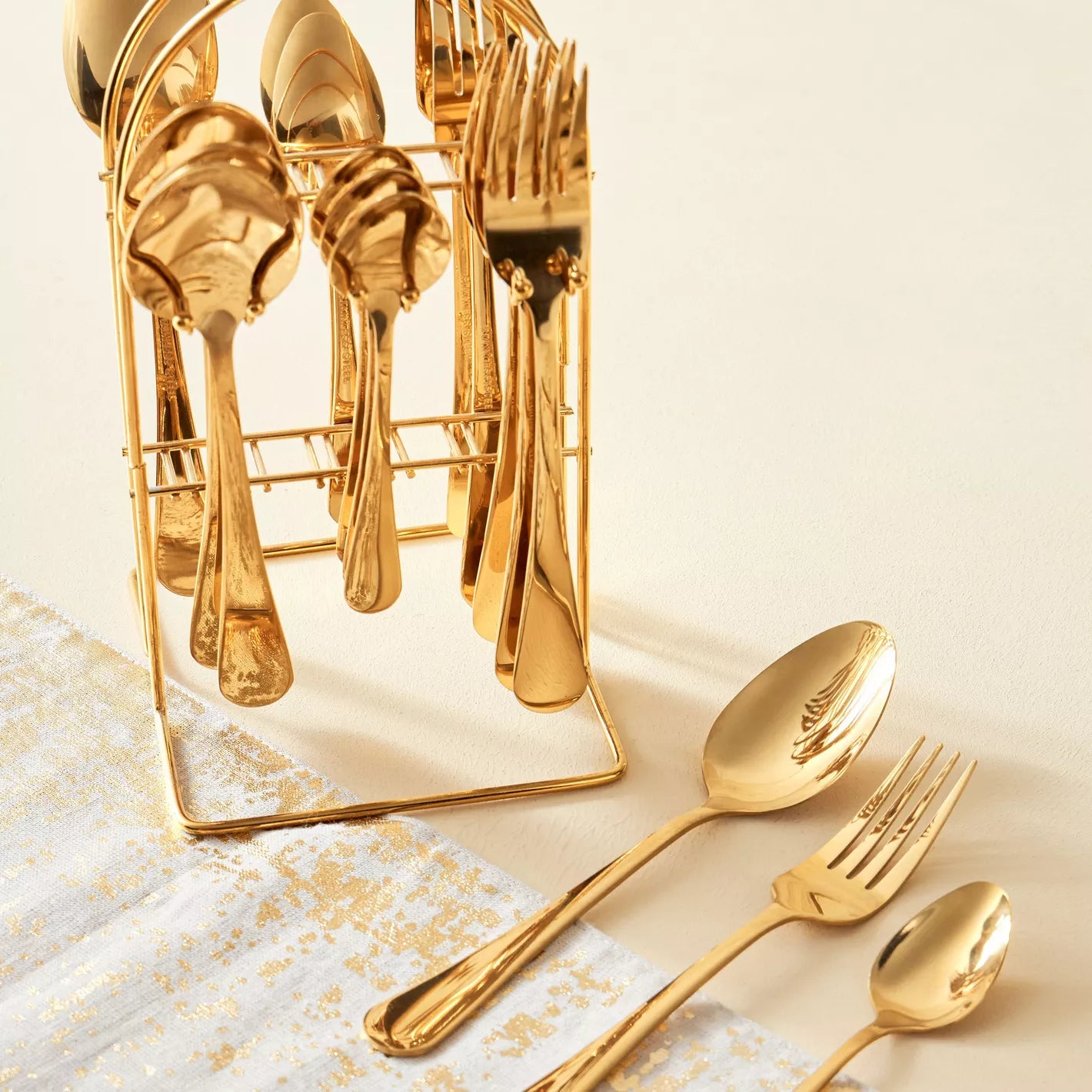 Golden Aura Polished Gold Cutlery Set - 18 Piece Cutlery Set