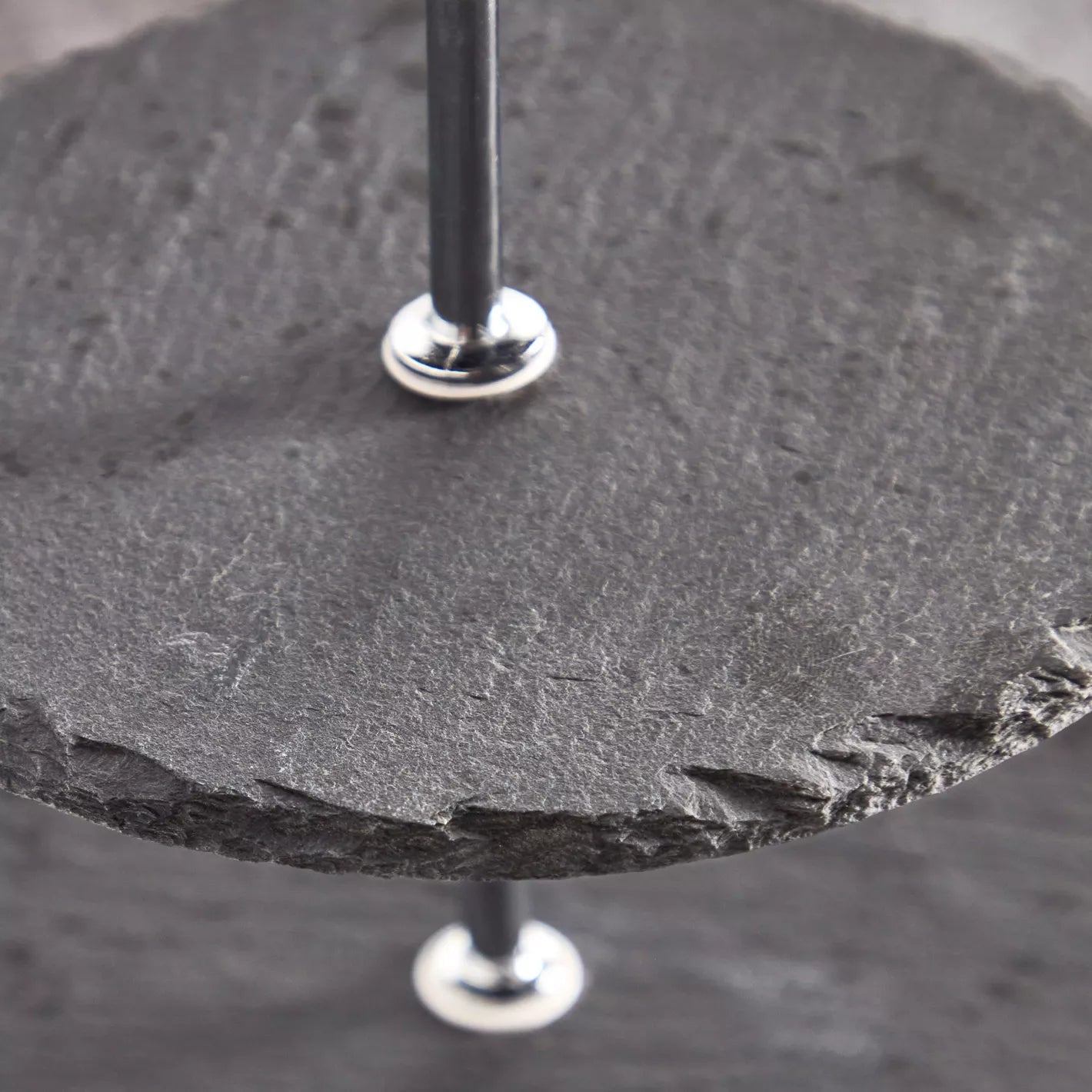 Rustic Chic Two-Tier Slate Dessert & Serving Stand with Silver Handle